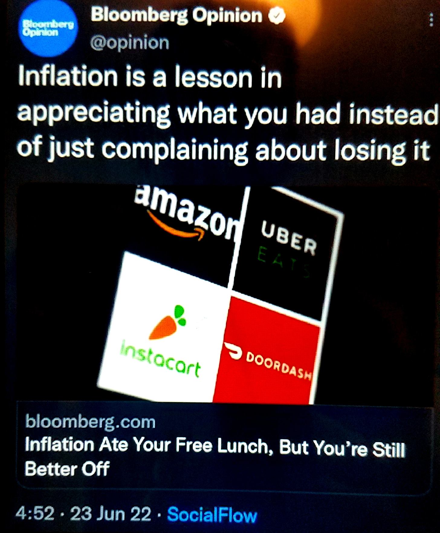 Inflation was CAUSED by these criminals and now they gloat as they have made trillions off of their scams while forcing millions into austerity and poverty. It’s all because of egregious violations of Natural Law, but WE are the ones who all suffer the consequences, not those committing the violations. They “cover” their “karma” by telling us exactly what they are doing and plan on doing to us. Once we accept their “terms” the “karma” shifts to us because we were too oblivious to reject them. This is how the enemy operates and all we need to do is cut them out of our lives to finally end this vicious cycle completely out of balance with the Natural Order.